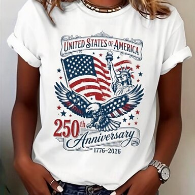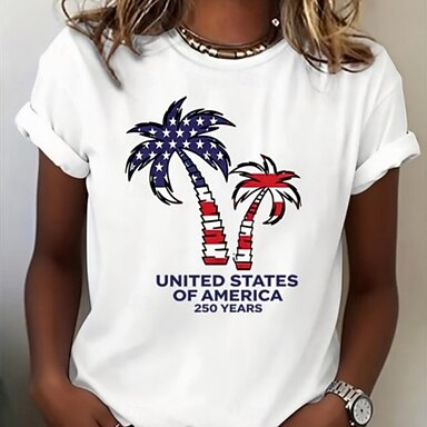 Unabhängigkeitstag Amerikanisches Jubiläum Patriotisches Damen T-Shirt Grafische Nationalflagge Vintage Stilvoll Klassisch Kurzarm Rundhals Alltags Wochenend Druck Weiß-Blau Weiß Rot