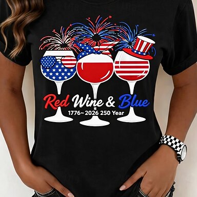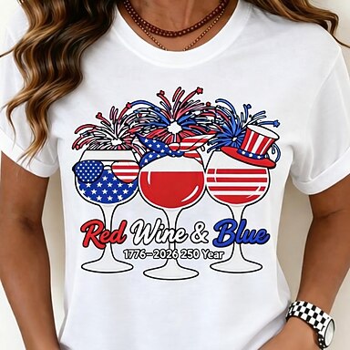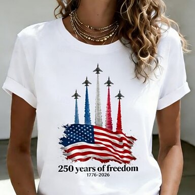 Unabhängigkeitstag Patriotische Damen T-Shirt Druck Grafik Flagge Stilvoll Klassisch Leger Kurzarm Crewneck Rundhals Reguläre Oberteile Täglicher Druck Blau Marineblau Rot Blau Sommer Frühling