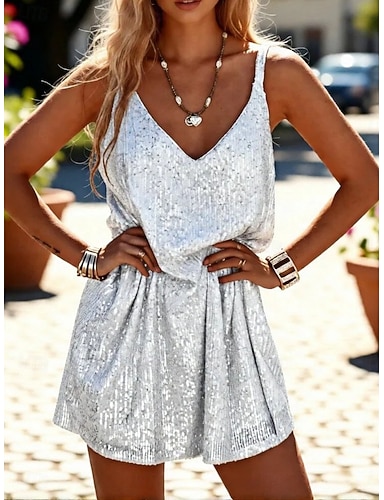 Damen Minikleid Weißes Kleid Paillettenkleid Freizeitkleid Mode Modern Outdoor Urlaub Party Normale Passform Einfach Ärmellos V Ausschnitt Schwarz Weiß Gelb Sommer Frühling