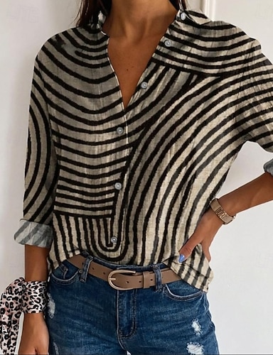 Damen Hemd Knopfleiste Bluse Kunstbaumwollleinen Knöpfe Druck Blumen Geometrisch Basic Lässig Langarm Hemdkragen Normale Oberteile Täglich Armeegrün Rote Khaki Grau Herbst Winter