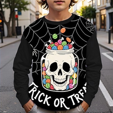Halloween Jungen 3D Schädel T-Shirt Langarm Frühling Herbst Mode Basic Kinder 4-12 Jahre Rundhalsausschnitt Outdoor Lässig Täglich Normale Passform