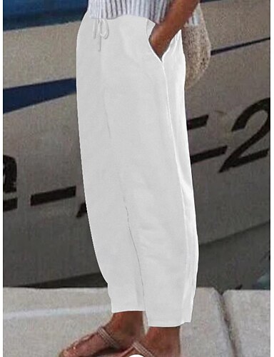 Damen Caprihose Hose aus Baumwollleinen Chinos Sommershorts Streetwear Lässig Volle Länge Mittlere Taillenlinie Einfach Kordelzug Tasche Bequem Unelastisch Täglich Outdoor Urlaub Blau Grau Schwarz