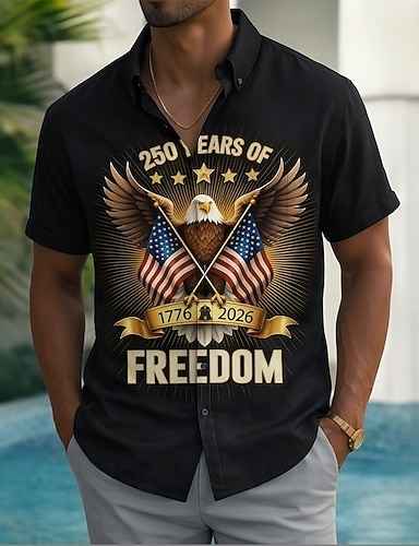 Tag der Unabhängigkeit Herren Amerikanische US-Flagge 250. Jahrestag des Unabhängigkeitstages der USA am 4. Juli Patriotisch Hemd Sommerhemd Knopfhemd Kurzarm Modisch lässig Ferien Sommer Frühling