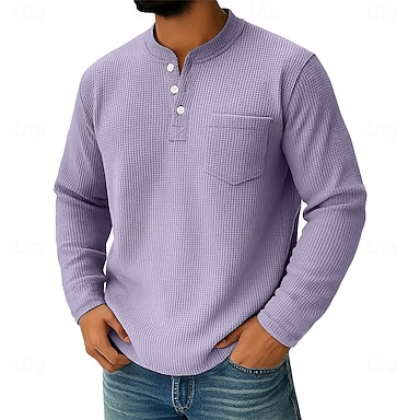 Herren Waffel-Henley-Hemd T-Shirt Langarm Einfarbig Einfach Texture Mode Designer Lässig Tasche Knöpfe Henley Lässig Täglich Outdoor Sommer Frühling Herbst Schwarz Rosa Grau Henley T-Shirt