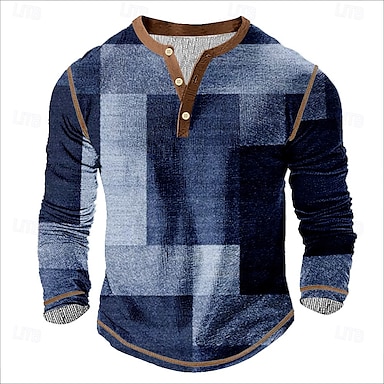 Herren Grafik Patchwork Henley Hemd Waffel-T-Shirt Langarm 3D-Druck Mode Designer Lässig Sport im Freien Ferien Festival Frühling & Herbst Schwarz Braun Grün Dunkelblau Henley Henley T-Shirt