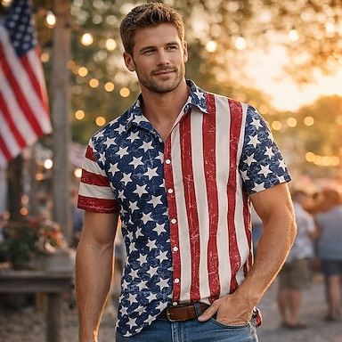 Unabhängigkeitstag Herren US-Flagge Patriotisch Vierter Juli Hemd Sommer Hemd Button Up Hemd Kurzarm Mode Freizeit Outdoor Urlaub Sommer Frühling Turn-down 3D Druck