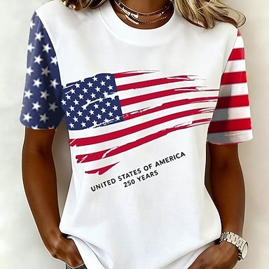 Amerikanischer Unabhängigkeitstag Damen T Shirt Druck Grafik Flagge Amerikanische Flagge Vintage Stilvoll Klassisch Kurzarm Rundhalsausschnitt Rundhals Normale Oberteile Lässig Täglich Weiß Rote