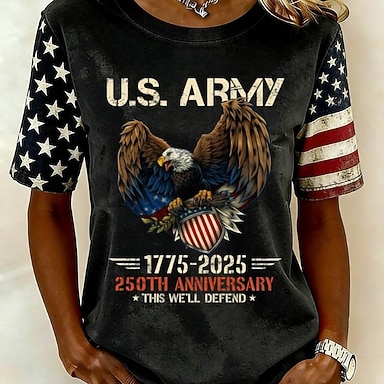 Amerikanischer Unabhängigkeitstag Damen T Shirt Druck Grafik Flagge Stilvoll Klassisch Lässig Kurzarm Rundhalsausschnitt Normale Oberteile Täglich Blau Rote Staubiges Blau Sommer Frühling