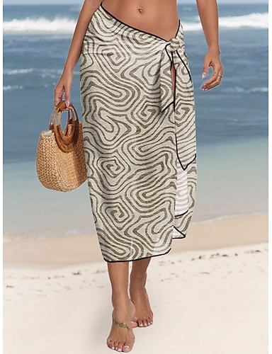 Damen Cover-Up Badeanzug Wickelrock Urlaub Vintage geometrisch ärmellose Badeanzüge