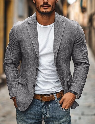 Herren Leinenblazer Blazerjacke Lässig Geschäft Arbeit Vintage Neutral Frühling Herbst Leinen Baumwoll Mischung Einfarbig Einreihig Blazer Blau Grau