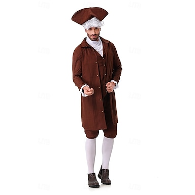 250-jähriges Jubiläum USA Rokoko Barock Outfits langarm George Washington Kolonial Revolutionskrieg Kostüm Herren Karneval Unabhängigkeitstag 4. Juli Erwachsene Mantel Hose Kragen