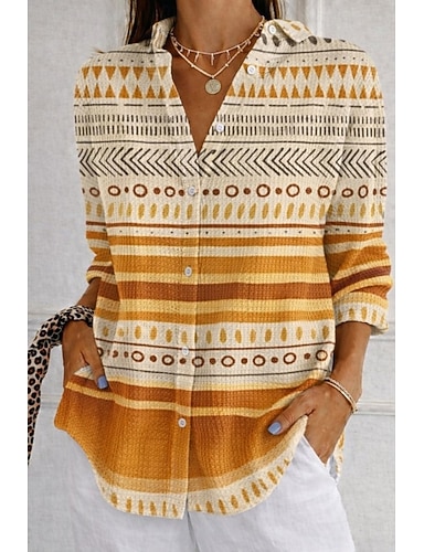 Damen Hemd Waffelhemd Freizeithemd Knöpfe Grafik Elegant Urlaub Vintage Langarm Lange Oberteile Täglich Outdoor Streetwear Weiß und Rosa Gelb Regenbogen Sommer Frühling Herbst Winter