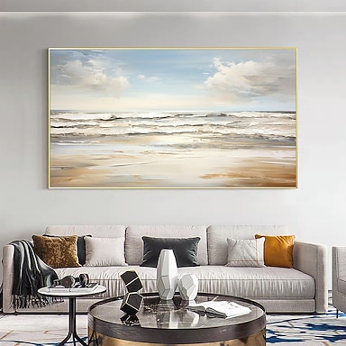 Strandgemälde auf Leinwand, handgemalte Wandkunst, Ozeangemälde, handgemachte moderne Kunst, Küstengemälde, Wandkunst, abstrakte Kunst, Gemälde für Wohnzimmer, Wandkunst, großes Wellenmeergemälde