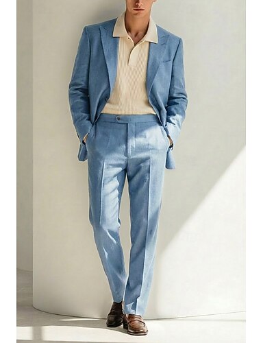 Herren Smokings Leinenanzüge Frühlingshochzeit Geschäft Himmelblau Dunkelgrün Frühling & Sommer Anzug Steigendes Revers Gekerbtes Revers Mode Täglich Einfarbig Figurbetonter Schnitt 2-teilig