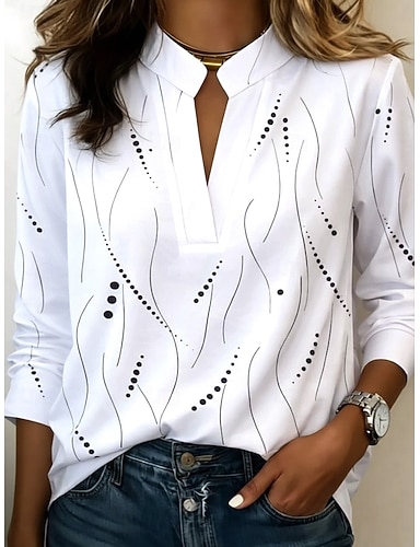 Damen Hemd Bluse Patchwork Knöpfe Einfach Vintage Stilvoll Klassisch Langarm V Ausschnitt Lange Oberteile Täglich Ferien Ausgehen Schwarz Weiß Rosa Königsblau Khaki Sommer Frühling