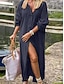 Damen Maxikleid Sommerkleid Lässig Boho Täglich Ferien Einfach Langarm Rundhalsausschnitt Schwarz Marineblau Orange Grün Sommer