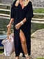 Weihnachten Damen Maxikleid Faltenkleid Party Lässig Boho Täglich Date Ausgehen Normale Passform Stammes Langarm V Ausschnitt Schwarz Rote Herbst Winter