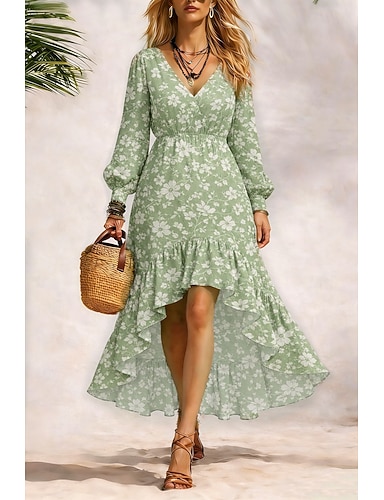 A-Linie Bodenlang Abendkleid Elegant Blumen Mutter der Braut Dreiviertelarm V Ausschnitt Gartenparty Hochzeit Satin Spitze mit Falten