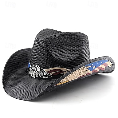 Herren Kentucky Derby Hut Cowboyhut Schwarz Gelb Polyester Druck Stilvoll Reise Western-Cowboy Outdoor Urlaub Flagge Atmungsaktiv