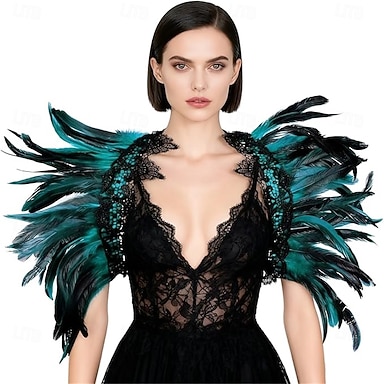Punk & Gothic Viktorianisch Schals Federumhang Hexe Maleficent Kostüm Damen Fantasie Walpurgisnacht Halloween Karneval Leistung Party Erwachsene Schal Ganzjahres