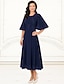 A-Linie Cocktailkleider Elegant Formelle Kleidung Formell Hochzeit Tee-Länge Dreiviertelarm V Ausschnitt Stretch Satin mit Schleife(n) 2025