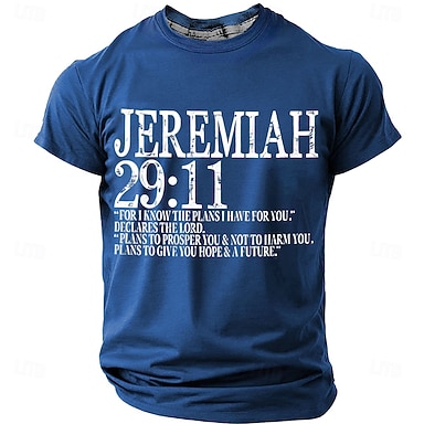 Herren-T-Shirt mit einfarbigem Kreuz- und Bibelmotiv, Kurzarm, 3D-Druck, Rundhalsausschnitt, Vintage-Retro-Stil, für Alltag und Festivals, in Blau, Schwarz und Burgunderrot, Sommer/Frühling, Größen: