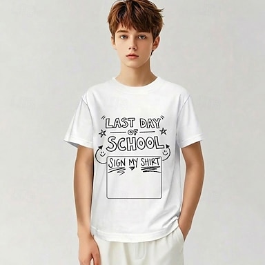 100% Baumwolle Kinder Jungen Schwarz Weiß Grafik Buchstabe T-Shirt Bluse Rundhalsausschnitt Kurzarm Outdoor Alltagskleidung Mode Streetwear Designer Drucken Sommer