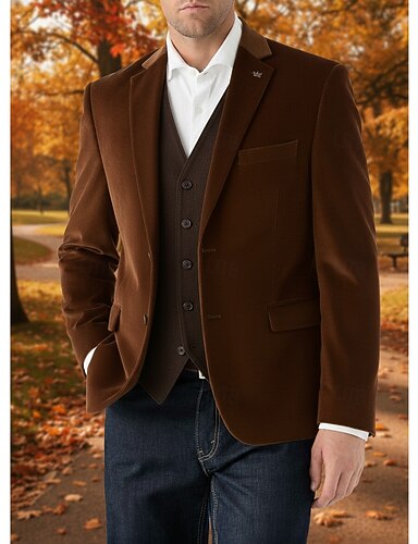 Herren Blazer aus Wildlederimitat Blazerjacke Lässig Geschäft Arbeit Elegant Vintage Herbst Winter Polyester Einfarbig Doppelreihig Blazer Braun