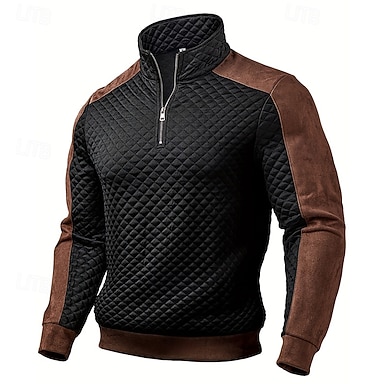 Herren Pullover Viertelreißverschluss Sweatshirt Rippenstrick Braun Stehkragen Halber Reißverschluss Einfach Patchwork Gerippt Strukturiert Sport & Outdoor Lässig Täglich Streetwear Cool