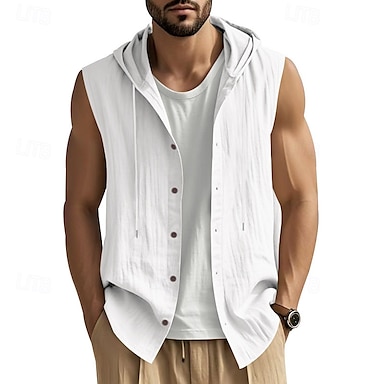 Herren Tank Top Weste Unterhemd Ärmelloses Shirt Ärmellos Mit Kapuze Sommer Einfach Mode Designer Basic Knöpfe Urlaub Straße Ausgehen Schwarz Weiß Gelb Top T-Shirt für Herren