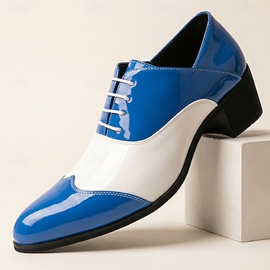 Herren-Oxfordschuhe aus blau-weißem Lackleder, Schnürschuhe, formelle elegante Schuhe, modisches Statement-Schuhwerk für Hochzeiten, Partys, Bankette, Bühnenauftritte und Abendveranstaltungen
