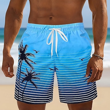 Herren Kokospalme Grafikdrucke Badehosen Badeshorts Boardshorts Mittlere Taille Hawaiianisch Boho Lässig Täglich Ferien Kordelzug mit Mesh-Futter Elastischer Bund Designer Bekleidung