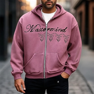 Herren Grafik Kapuzensweatshirt Mode Täglich Lässig Langarm Mit Kapuze Urlaub Party Streetwear Festival Schwarz Rosa Kaffee Grau Reißverschluss Tasche Drucken Frühling Herbst Designer S M L XL 2XL 3XL