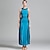 elegantes türkisfarbenes Gesellschaftstanzkleid mit geblümten Seiten und ärmellosem Design für Tanzaufführungen