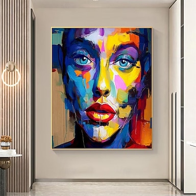 Farbenfrohes Porträt-Ölgemälde, handgemalte Wandkunst, abstraktes Posterbild von Mann und Frau, handgemaltes Heimdekorationsbild in Regenbogenfarben, Gesichtsmalerei, Wali Art Decor