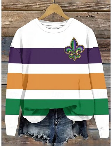 Karneval Damen Pullover Sweatshirt Grafik Mode Lässig Langarm Rundhals Reguläre Oberteile Straßen Alltag Druck Lila Grün Frühling Herbst Winter