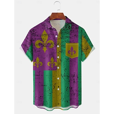 Karnival Herren Maske Knopfhemd Kurze Ärmel Künstlerisch Brautkleider schlicht Komfortabel Outdoor Urlaub Strasse Frühling Sommer Hemdkragen Print Regenbogen