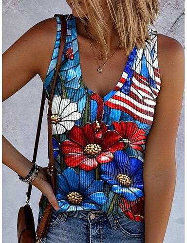 Amerikanischer Unabhängigkeitstag Damen Tank Top Druck Grafik Flagge Vintage Tropisch Stilvoll Ärmellos V Ausschnitt Normale Oberteile Täglich Blau Weiß Rote Leicht Blau Sommer Frühling