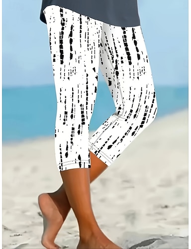 Damen Chinos Leggings Urlaub Vintage Streetwear Capris Hohe Taille Grafik Geometrisch Drucken Komfort Weich Bequem Hohe Elastizität Täglich Outdoor Urlaub Weiß Sommer Frühling Herbst Normale Passform