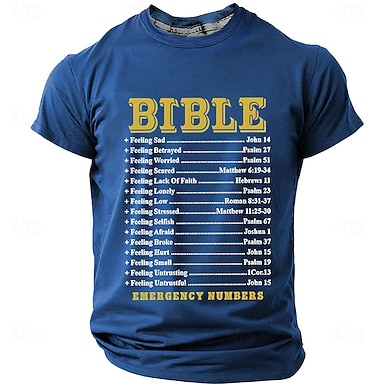 Herren-T-Shirt mit einfarbigem Kreuz- und Bibelmotiv, Kurzarm, 3D-Druck, Rundhalsausschnitt, Vintage-Retro-Stil, für Alltag und Festivals, in Blau, Schwarz und Burgunderrot, Sommer/Frühling, Größen: