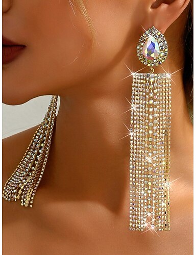 Damen-Quastenohrringe mit Kristall-Strasssteinen, langer, baumelnder Statement-Schmuck für Party- und Club-Outfits im Nachtleben