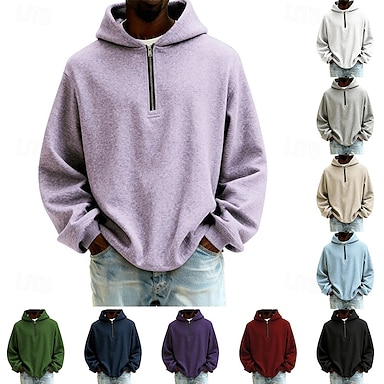 Herren Kapuzensweatshirt Pullover Viertelreißverschluss Kapuzensweatshirt Schwarz Weiß Rote Marineblau Violett Mit Kapuze Einfach Reißverschluss Lässig Täglich Sport & Outdoor Streetwear Cool