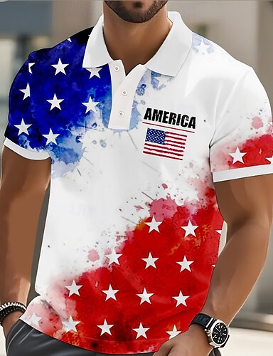 4. Juli 2026 250. Herren Amerikanische US-Flagge Polo Kurzarm Polo-Shirts Revers Lässig Athleisure 3D-Druck Knöpfe Sommer Blau