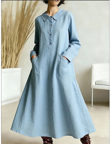 Damen Maxikleid A Linie Kleid Lässig Täglich Normale Passform Einfach Langarm Revers Blau Marineblau Rote Grün Sommer Frühling Herbst