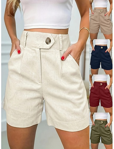 Herren Anzughose Leinenhosen Hose Chinos Knöpfe Tasche Einfach Komfort Formell Party Arbeit Mode Klassicher Stil Weiß Khaki Mikroelastisch