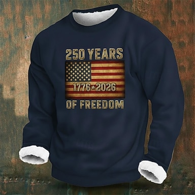 Herren Grafik Amerikanische US-Flagge Fleece Pullover Streetwear Täglich Stilvoll Klassisch Lässig Rundhalsausschnitt Outdoor Urlaub Ausgehen Schwarz Rote Marineblau Braun Drucken Herbst Winter