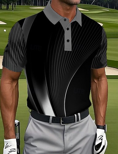Herren Geometrisch Polo Golf Poloshirts Kurzarm Polo-Shirts Revers Lässig Athleisure 3D-Druck Knöpfe Sommer Schwarz Purpur