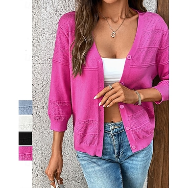 Damen Einfarbig Strickjacke Herbst Winter Langarm Athleisure V Ausschnitt Outdoor Urlaub Schwarz Weiß Blau Sportbekleidung Sportkleidung