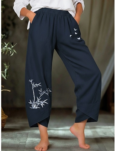 Damen Sommerhose 100% Baumwolle Hosen Hose Leicht Lässig Knöchellang Niedrige Leibhöhe Grafikdrucke Tasche Atmungsaktivität Bequem Unelastisch Alltagstauglich Wochenende Marinenblau Schwarz aschgrau