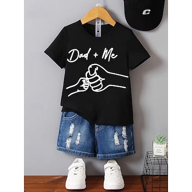 100% Baumwolle Kinder Jungen Schwarz Grafik Buchstabe T-Shirt Bluse Rundhalsausschnitt Kurzarm Outdoor Alltagskleidung Mode Streetwear Designer Drucken Sommer Frühling